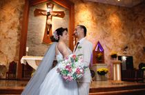 A cerimônia será católica tradicional, nossa recepção será no estilo rústico e romântico, bem intimista. As cores do casamento são azul marinho, terracota e vinho.