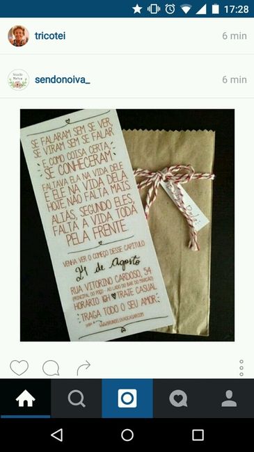 Olá noivinhas!! Eu vendo os instas da vida de noiva, vi esse convite e particularmente achei lindo. Uma ótima ideia, para mini wedding, super simples!!