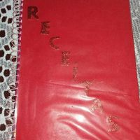 Oii... hoje resolvi mostrar meu Caderno de receitas. Comprei um caderno comum com arame... cobri com papel camurça vermelho e as letrinhas fiz de EVA com gliter. E por fim plástico colante. É bem...