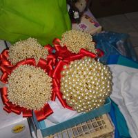 Oi noivas!! tudo bem? meu buque de pérolas ficou pronto!!! eu mesma fiz ele, usei pérolas grandes para o meu e pérolas pequenas para o das minhas madrinhas, faltam 2 das madrinhas o que acharam...