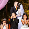 Nosso casamento não poderia ter sido mais especial. Planejamos cada detalhe dele e Deus abençoou nossas decisões, fazendo esse dia tão perfeito. Foi um lindo casamento rústico, simples, ao ar livre em um bosque de bambus decorado com girassóis. Fez um sol maravilhoso no dia e as pessoas especiais estavam conosco.