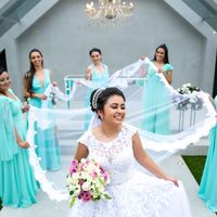 Minha madrinhas ,usando cor verde Acqua a cor de boas vibrações e boas energias💓 Meus padrinhos usando terno padrão preto e gravata verde Acqua combinando com as madrinhas