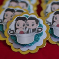 Noivinhas lindas, não resisti. Ia dar apenas um copinho com orégano dentro e colocar adesivo. Mas decidi fazer uns personalizados para meu chá, pra enfeitar a mesa e ser inesquecível. E saiu assimmm....