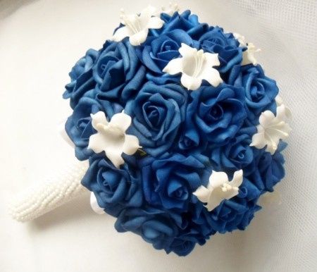 Meninaas meeu sapatos seraa azuul e pedi pra pessoa que ira fazer o meu buque me fazer uma amostra. Preciso da opinião de vocês. O que acharaam ???? Ondee seguro é de perolas... Me ajudeeeemmm......