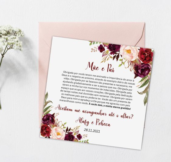 Como meu esposo não tem os familiares por perto, ele decidiu que quer que minha mãe entre com ele na igreja e então, queremos fazer um convite bem especial para ela. Alguma dica de textos ou algo assim?