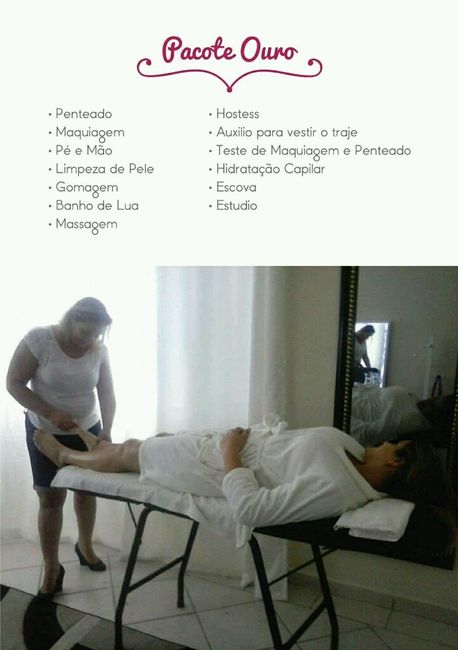 Quais os itens que tem no seu pacote, para o dia da noiva? O gostaria que tivesse?