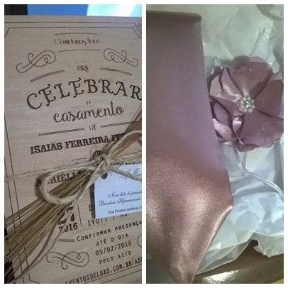 Olá noivinhas, esse foi o nosso convite para os padrinhos, escolhemos a cor NUDE para o vestido das madrinhas, e presenteamos eles com a gravata e a elas com o corsage. Convite dos padrinhos