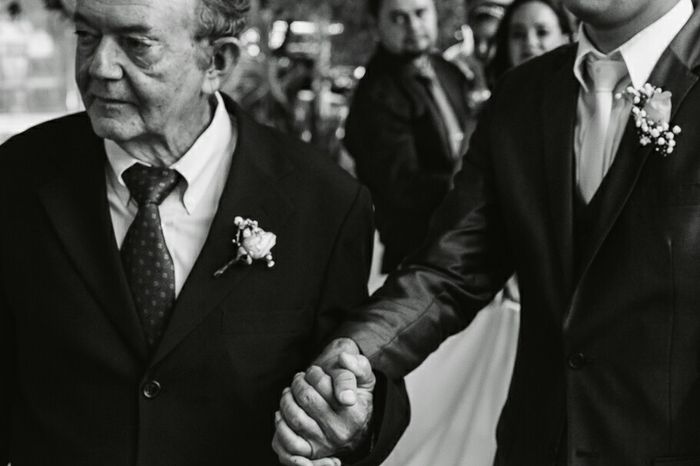 Eu e meu esposo entramos com nossos amados pais. Acho um gesto maravilhoso de gratidão por quem se dedicou tanto a nós e para mim fazia mais sentido do q entrar só com meu pai. Foi emocionante!